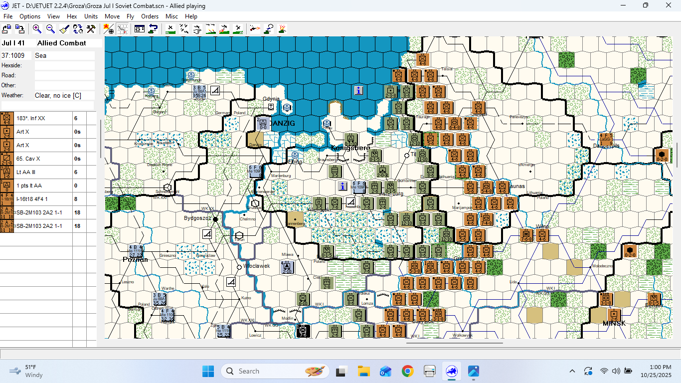 The Soviet player conducts a special Jun II turn limited to movement and exploitation phases (no combat). For those unfamiliar with Europa, c/m units may move during the exploitation phase. Movement is limited to within the Soviet Union (not occupied Poland). Air units may move in either, but not both, phases.